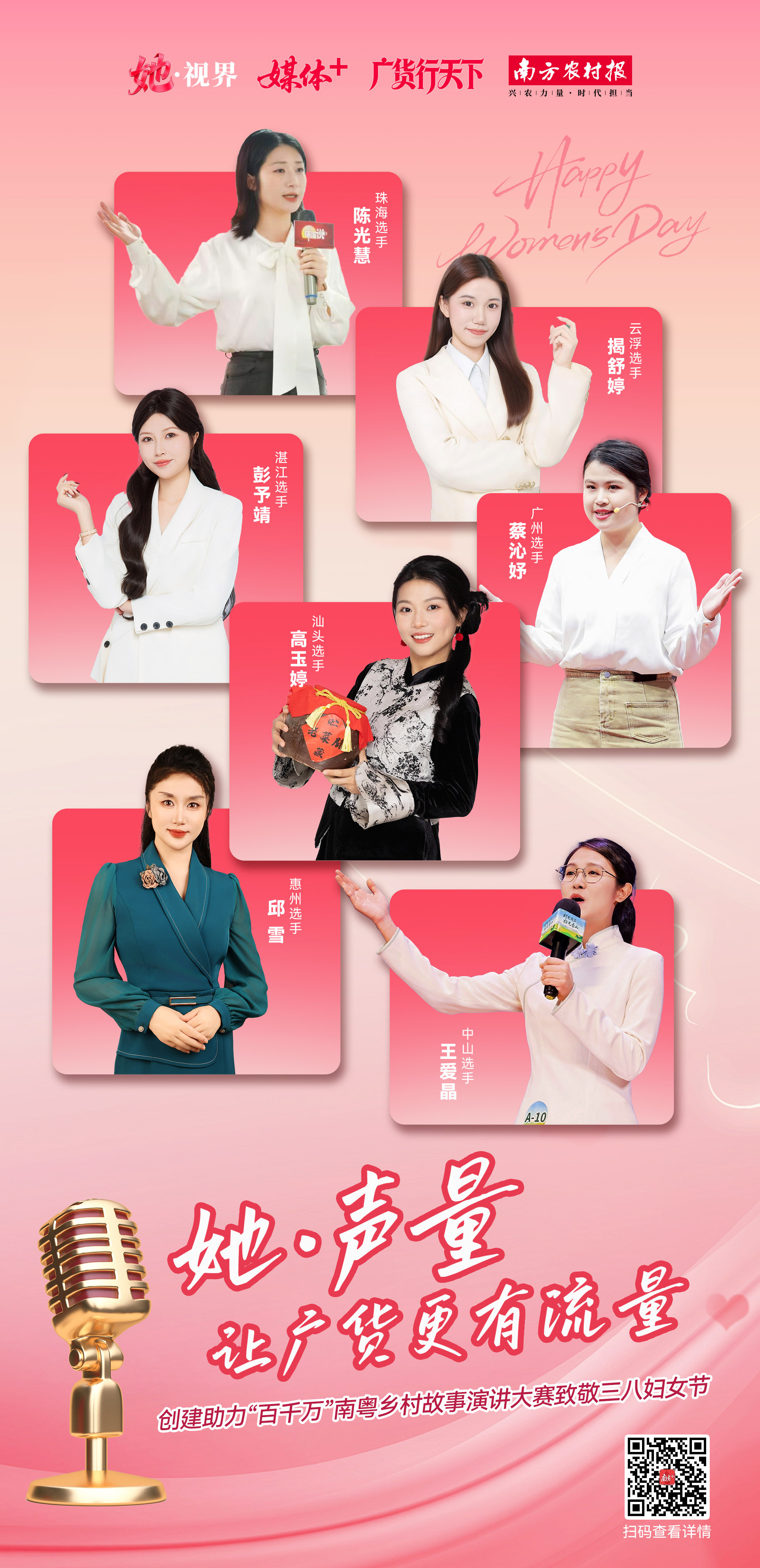 比赛中,来自全省各地的选手,用亲身经历讲述自己与南粤乡土和“百千万工程”的点滴。其中一群女性格外引人注目,她们是海归硕士、非遗传承人、传媒记者、驻村干部,却有一个共同的身份:让“广货”走出乡村的“新农人”。